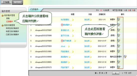 第四节 已投稿稿件管理