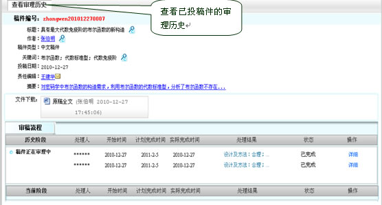 作者已投稿件的审理历史详情: